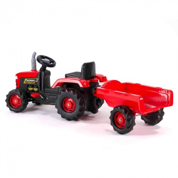 Παιδικό τρακτέρ με καρότσα από την εταιρεία Zita Toys, το όχημα ξεκινά με την ώθηση που δίνει το παιδί σε αυτό είτε κάνοντας πετάλι είτε τσουλώντας τα πόδια του στο έδαφος.